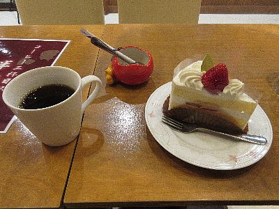 ショートケーキに紅茶かコーヒー(アイスまたはホット)で今どき1コインの500円ぽっきりはお得感満載。