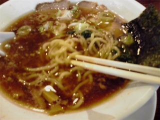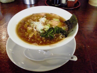 はっきりとしょう油色のスープは豚系のダシと魚介系のダシがかなりはっきりと表に出た力強い味わいです。