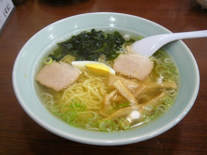 ちょっと甘めだけど実はけっこう塩気がありそうな気がしつつもそうは感じさせないスープに味つけ控えめなメンマとチャーシュー、ワカメ、そして櫛形に切った玉子。