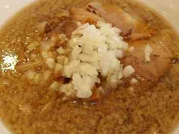 ラーメン(650円)は醤油の風味を生かした濃い色のスープにたっぷりの背脂と刻んだ玉ネギの薬味。この玉ネギが杭州飯店に代表される三条・燕の正統背脂ラーメンの系列であることを示しています。ですからネギラーメンは長ネギではなく玉ネギです。
