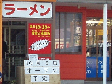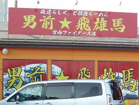 新店舗の名称は「男前 飛雄馬」前に「俺達らしく、ど根性らーめん」のキャッチフレーズ、後に「宮内ファイターズ店」と店舗の位置づけを誇示する大看板を掲げ、戦闘モード態勢も開店前から万全。