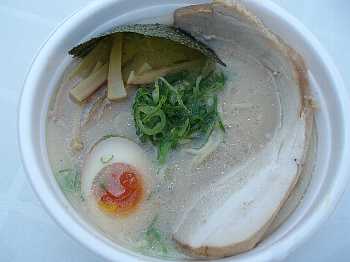 ブースの後ろにはかなりのスーペースがあったので、都合はあったのでしょうが、ラーメンを受け取った後の移動のための通路を広くとるか腰をおろしてラーメンを食べる場を設定することもできたのではないかと思いました。