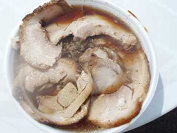 極細と言うわりには普通の細さ。わざわざ極細を名乗るのは、リング外は紳士の極悪レスラーなみ。あっさりしたスープはコッテリ野郎の多い中、新鮮。うまい。おっと、タッグを組む塩バラチャーシューが自ら焼きを入れて食傷を起こさせるような臭いを発散させる暴挙にでた。これじゃフェアープレイの淡麗スープが台無しだ!