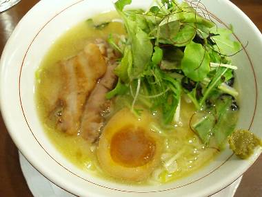 いつもながら青桐のチャーシューはうまいです。味玉はちょっと味濃い目。岩のり、岩のりと書きましたが、違うかもしれません。彩を主な役割としているのでしょうが、熱いスープに触れると明るい緑色に一変し、磯の香りがふんわり立ち上る心憎い演出。