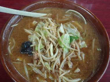 トッピングというより、味噌汁の具というかたちの、キャベツ、もやし、挽肉、きくらげ。