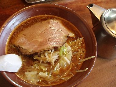 麺は4㎜×2㎜弱の平打の縮れ麺。麺が幾分スープに負けているように思えるので、厚みがもっとあるとスープとの釣り合いもとれ、うまいような気がします。極太の麺とミソのスープの組みわせを事前に味わっているので、個人的にはこの麺はちょっとものたりませんでした。
