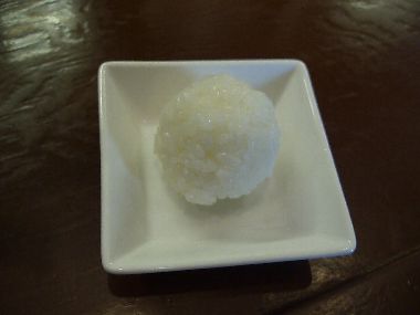 食べ進んだ頃、時間差を置いて、サプライズゲストのように小ぶりのおにぎりが登場。スープと一緒に頂きました。心憎い演出です。(4月9日現在はトッピングとして一緒に提供、しかもバーナーで軽く焦げ目をつけられています)