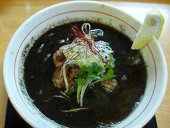 トッピングは扱いかねたレモン。スープに絞り込んでも、影響はまるでなさそうということで、ちょっとかじって、スープを味わうと、黒ゴマの風味が渾然一体のスープから現れる。レモンの意味は味覚のリフレッシュてことでしょうか。