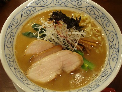 「胡麻をハードに焙煎してパウダーにし自家製焦がし油と一緒に鶏骨スープに合わせた」ス-プはゴマの風味と甘みが鶏白湯のコクと旨味でいちだんとマイルドで奥深い味わい。食べ終わってからも、後味のうまさを反芻できるスープです。ただわがままを言えばスープの甘みさを引き締めるような薬味、例えば2年前の青桐の限定ラーメン「泰唐麺」でトッピングされた青唐辛子の香味油があればと感じましたね。