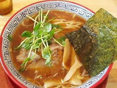 ショウガが香るスープは豚骨醬油を思わせる色合い。スープを強めに炊いているのかもしれません。