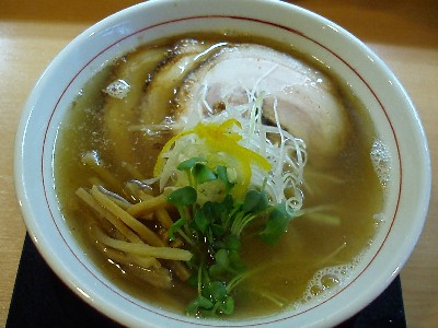 トッピングは豚バラの大きなチャーシュー、さらしネギ、カイワレ、柚子皮(これが「いい仕事してますね~ぇ」って思わせるほど濃厚アゴだしスープにピッタリの口直し)、細切タケノコ。えらく今回のメンマは細いと思いながら口にすると、食感がまるで違います。常連さんがやっぱり気になったらしく、店主と話していたのを横からこっそり聞くと、これがタケノコ。またもやシブい演出!