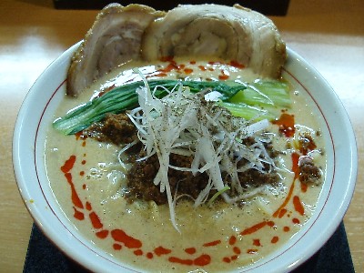 最初の一口のスープはほどほど辛く、このスープをたっぷりまとった麺は熱さで辛味が立っているので、むせないように注意しましたが、しばらくすると辛味に慣れたのか、初めに心配していたほどではありません。刺激的な辛さはスープに浮かんでいたラー油が主だったのかもしれません。