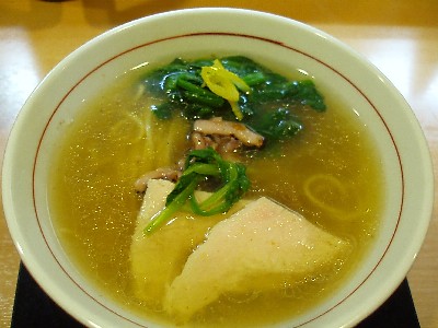「通常の塩のスープよりも旨味がたっぷりかな?」なんてスープを味わっていると一瞬燗酒のふんわりとした余韻。それもすぐに消えて、旨味たっぷりの元のスープに。日本酒は煮切っているとのことなので、ほのかな感じた日本酒の香りは幻覚だったのでしょうか。