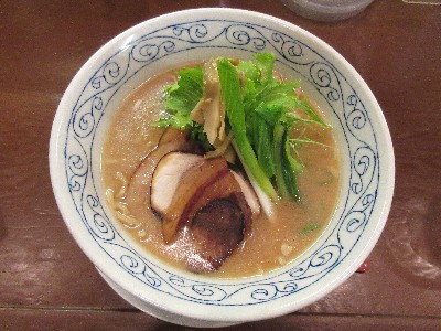 脂身に味が染みている豚バラ部位?のチャーシューがやけにうまい。自家製ザーサイがスープ口直しになってこれまたグッド。ラーメンに生の野菜はネギだけでいいと思っているオヤジにはこの生野菜の付け合せはちょいジャマッケ。ほとんど火の入っていないキノコも個人的には苦手。それでも野菜の美しい緑は感動もの。