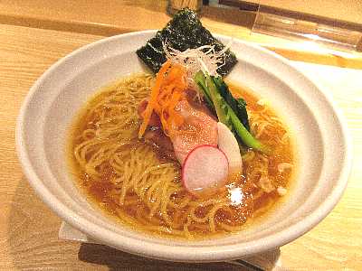 魚介が苦手な人はダメかもしれませんが、程よい鯛の風味。さらにこの澄んだスープに鶏油でコクをつけているらしい。醬油と塩だけで味を調えているというのも驚き。極旨なスープ。