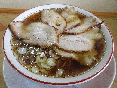トッピングはチャーシュー3枚、ネギ、青菜、メンマ。前回のと今回のチャーシューの枚数から考えあわせると、チャーシュー4枚増しが醤油ちゃーしゅー900円ということらしい。それと前回は青菜とメンマのトッピングがなかったのはオープニングキャンペーンのためだったのか、材料切れだったのか、それとも忘れたのか、とにかく今回は青菜とメンマはどちらにも付けられていました。
