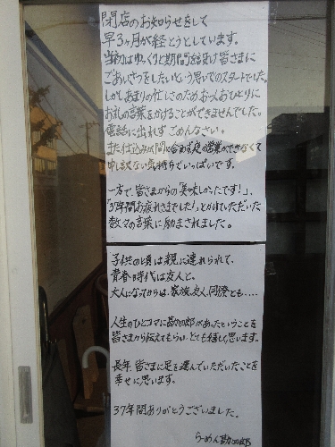 37年の歴史に幕。店頭に張り出された長文の謝辞の店主の思いは激熱。