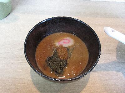 つけ汁は「濃厚魚介豚骨」の看板通り、醬油ダレを動物系(豚骨が主かな)ベースのスープで仕上げたもの。