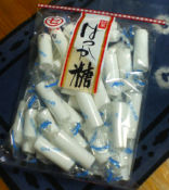 好みもあると思いますが、ハッカのスースーする清涼感は他の食べ物の味を分からなくしてしまうので、食べる頃合いといいますか、順序を考える必要がある少し珍しいお菓子だと思います。食べると美味しいのですが、地味な格好の割に個性が強いお菓子ですね。ケーキなどでは小さな葉っぱがアクセントでちょこっと載っているのを見るとハッカ糖を思い出します。この袋の商品は、2006年9月27日に198円で長岡市今朝白の原信で購入しました。