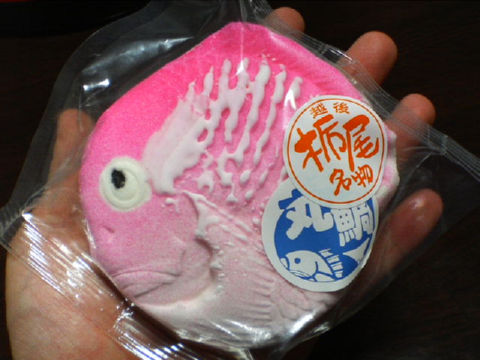 長岡駅のお土産売り場にあった丸い鯛の粉菓子。作ったのは旧栃尾市のおさべ菓子店です。私が生まれた時には他界していたというお爺ちゃんがここのお菓子屋さんと交流があったそうです。