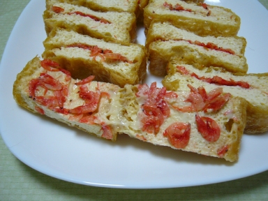 以前、わが家のネギ味噌を挟んだものを紹介したことがありましたが、やっぱりあぶらげには味噌が合うことを再認識しました。