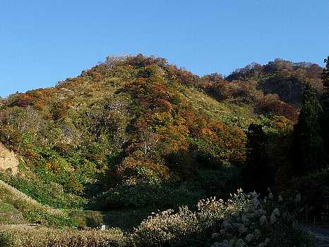 道路は猿倉岳の山頂近くを見上げられるほどの高さまで切られ、そこまで登ると右向かいに548mの南蛮山が上目使いで眺められるので、500mほどは登ったことになるのでしょうか。以後は下り坂。終わりにさしかかった紅葉を鑑賞しつつ一路奥の院へ。