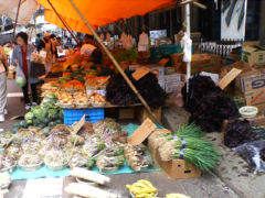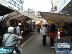 長岡市の中心部では月のうちで日に「3」と「8」の付くときには、愛宕町付近(神社裏手)に「三八の市」が、「5」と「10」のときは大手通りを横切る形で「五十の市」がたちます。先日は、たまたま五十の市でしたので、様子を見てきました。鮮魚は大きなスーパーが出来たためかお客さんは少なかったのですが、野菜の方は梅干や梅酒の仕込みの時期なのかそこそこにぎわっていました。魚、野菜、果物、履物、服、植木、刃物、野菜苗…と様々です。寒い時期にはたい焼きなどもあったと思いますが、今回は見かけませんでした。