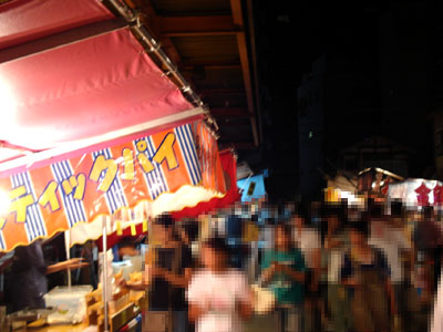 今日、明日と町内の神社でお祭りがあります。土曜日の夜の時点で、お店の数は4つ。たこ焼き屋、わた飴屋、おもちゃ屋、そして型抜き屋。そして今日の夜は...