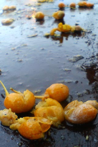 今朝は未明に強い雨が降りました。風もあり長岡駅東口の銀杏が歩道に落ちていました。