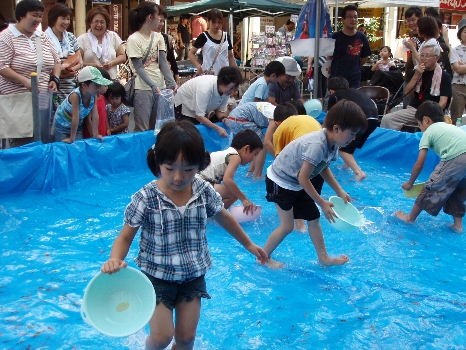 8月3日の長岡祭りの昼行事を見物。この日も暑くなりました。フリーマーケットや魚すくいを見て回りました。