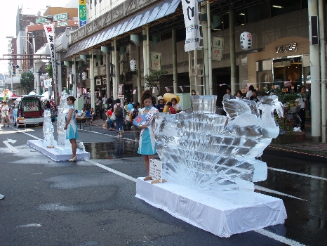 氷の彫刻の脇でにっこりほほ笑むおねーさんに激写小僧ならぬ写メ小僧が寄ってましたね。