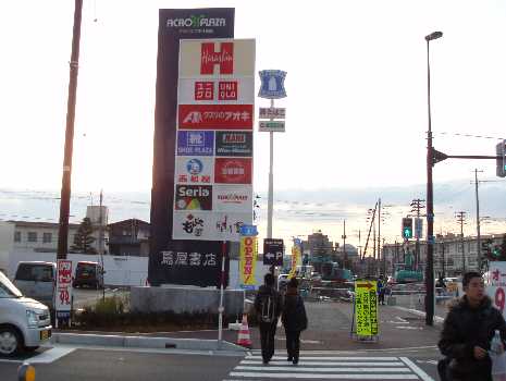 美沢四郎丸一帯に巨大ショッピングセンター出現。広い駐車場を取り囲むように店舗が並んでいます。