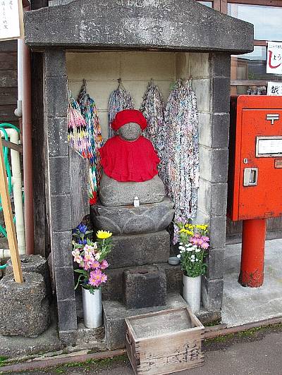 越のむらさきさんの事務所前の何気なく見ていたお地蔵さんの石の台に「右ハ江戸、左ハ山道」と彫られていると教えられ、「右って、この旧三国街道のことなんだね」って感心し、歴史を実感しました。