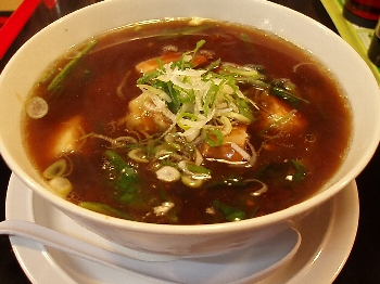 私の好みは第一に醤油、次に塩。具もチャーシューがのっかってれば、他はなくてかまわないってジャンクフードテイストの我がままな舌だから、「坦々麺がうまい」って聞いても、二の足を踏んでしまう。あんかけの手の込んだ豪華な具も同様。いつもなら醤油のチャーシュー麺を頼むのだけれど、中華を謳っているメニューの「五時間煮込んだ角煮」のフレーズに魅かれて、角煮ラーメンを頼む。これが予想外のうまさ。香辛料の香る角煮は柔らかだが肉の心地よい触感がある。ていねいな下ごしらえがうかがえる。