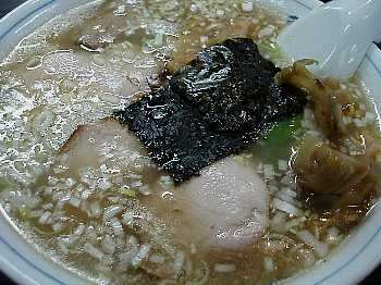 白く濁ったスープは重くなくさらっとして、濃厚ではありませんが、素材のうまみがたっぷり溶け込んでいるので、甘みが幾分多いように感じられます。そのままでもうまいに違いないでしょうが、それでも食べ進めるうちにどうしても甘みがくどく感じられそうになるところを、このたっぷりの刻み葱の薬味の効果がスープをピリリと引き締め、最後まで新鮮な気分で飲み干すことができます。