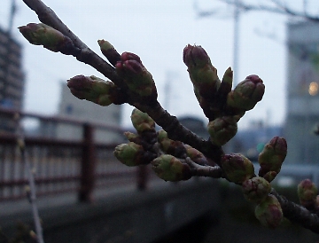 それでも、福島江のさくらはつぼみが膨らんできました。よく見ると、濃いさくら色の混じっているつぼみがかなりあります。