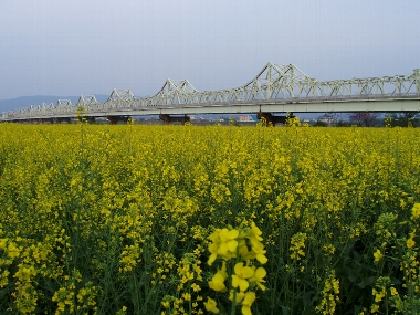 長生橋の西側の河川敷に広がる菜の花がいま真っ盛りです。
